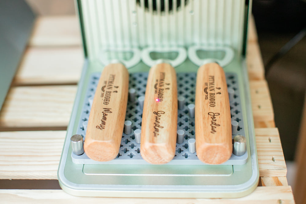 Most items take less than one minute to engrave. Timing can vary depending on the size of the item and the level of personalization we plan in advance. Smaller items can often be engraved in batches, and guests typically choose from a curated selection of designs or personalize with their name or initial. While every event is different, this service can accommodate gatherings as large as 250 guests. We’ll work together to plan what’s best for your guest list, timeline, and flow.